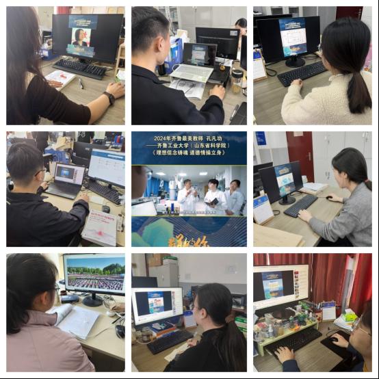 活动期间,学院充分利用山东教育电视台、山东教育社等官方平台资源,组织教师观看“齐鲁最美教师(团队)”先进事迹。这些来自教育一线的鲜活案例,化作一堂堂沉浸式师德教育课,生动诠释了新时代教师的责任担当,引发全体教师的强烈情感共鸣和深刻职业思考。