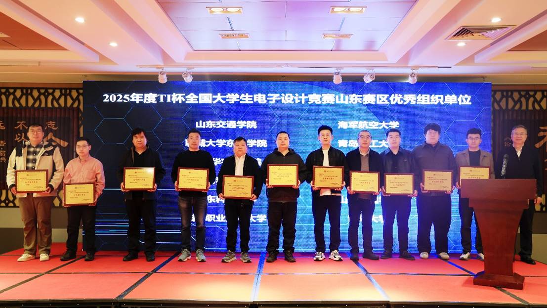 近日,2026年TI杯全国大学生电子设计竞赛山东赛区师资培训暨2025年山东赛区颁奖典礼在济南召开,我校获2025年度优秀组织奖,韩祥森老师获2025年度优秀指导教师。