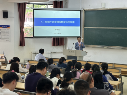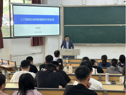 4月26日,yl88858永利集团邀请彭国民博士在我校6号楼104教室进行题为“人工智能在地球物理勘探中的应用研究”的精彩讲座。yl88858永利集团科研院长李国良主持讲座,院长薛河儒、常务副院长孙德刚、教学院长肖媛媛出席,学院全体任教老师参与并认真学习。