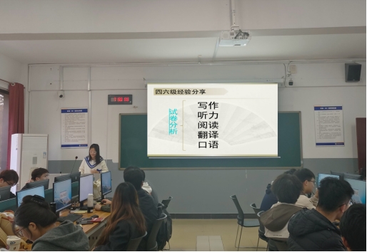 在交流会中,各班级选拔的顺利通过英语四六级考试的同学走上讲台,分享了他们备考四六级的经验和心得。他们不仅详细介绍了备考过程中需要注意的重点和难点,还分享了一些实用的学习方法和应试技巧。有的同学强调了词汇积累的重要性,分享了如何高效记忆单词的方法;有的同学则着重介绍了听力和阅读的训练技巧,分享了如何通过大量练习提高解题速度和准确率;还有的同学则从心态调整和时间管理等方面入手,为同学们提供了应对考试压力的有效策略。